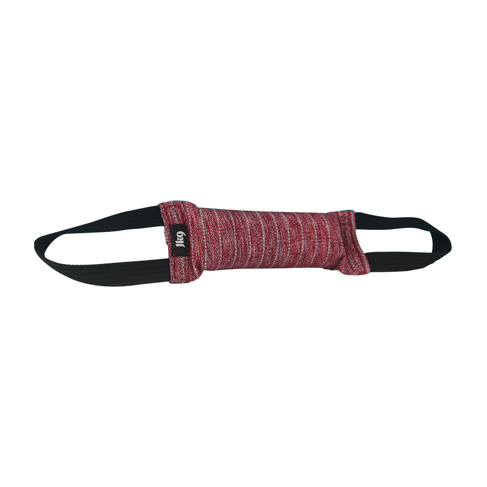 Este churro da Julios-K9 é feito de materiais suaves, não prejudiciais ao cão. Ainda assim, é um brinquedo de treino bastante resistente. Este churro é de algodão e tem duas pegas, uma em cada extremidade, com costura interior.
