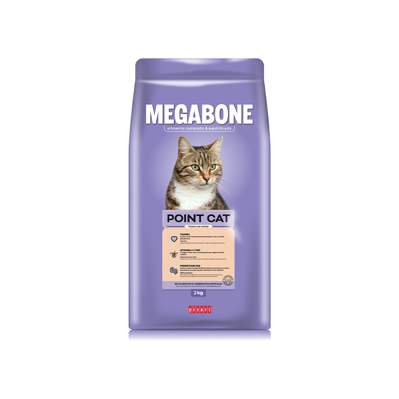 Megabone Point Cat é um alimento para gatos adultos com nível normal de atividade física diária.