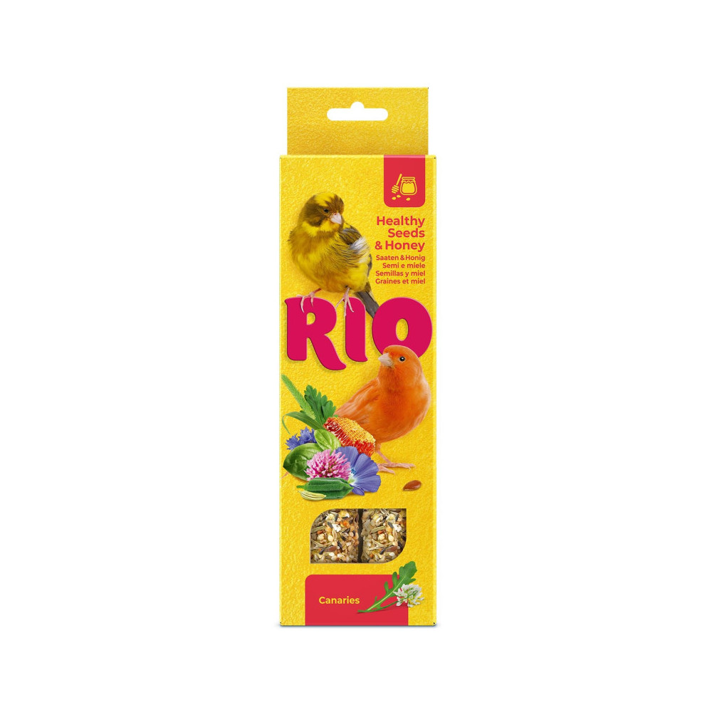 RIO Sticks Honey & Seeds são duas barras de snacks, muito nutritivas e saborosas. Um alimento complementar, adequado a canários, com mel e sementes.